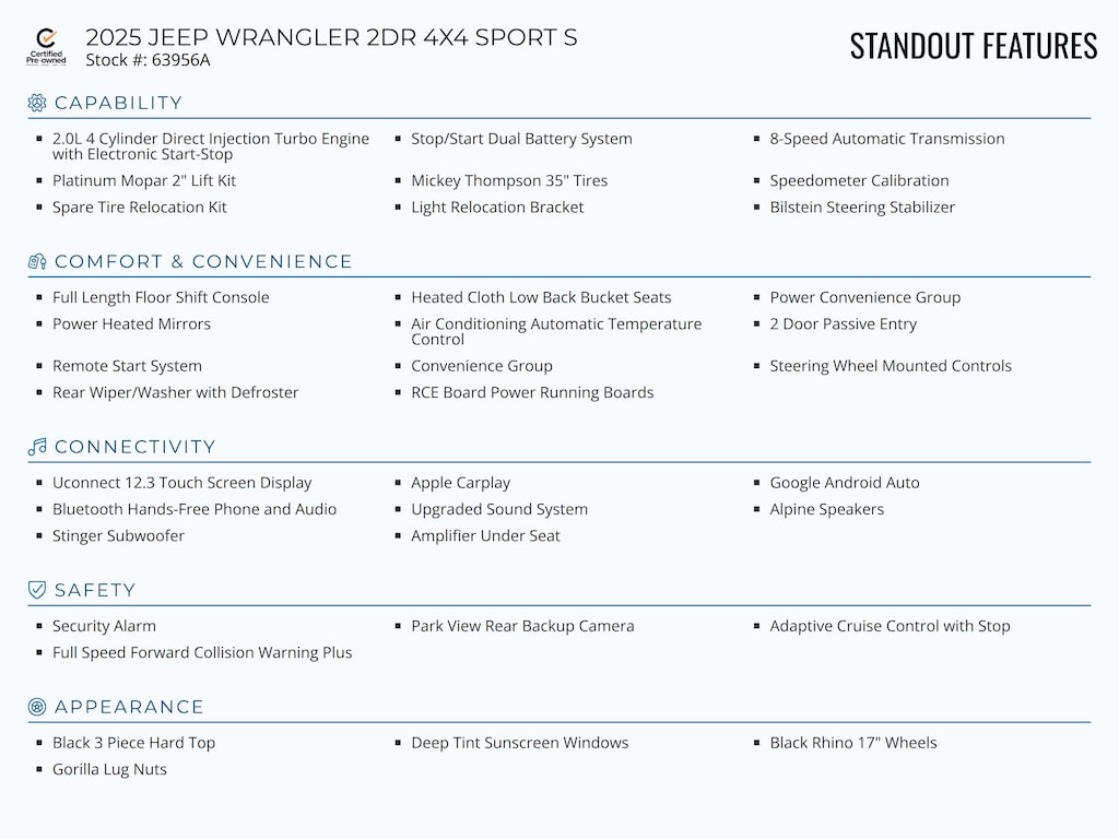 Standout features of this Certified Pre-Owned 2025 JEEP WRANGLER 2DR 4X4 SPORT S include: