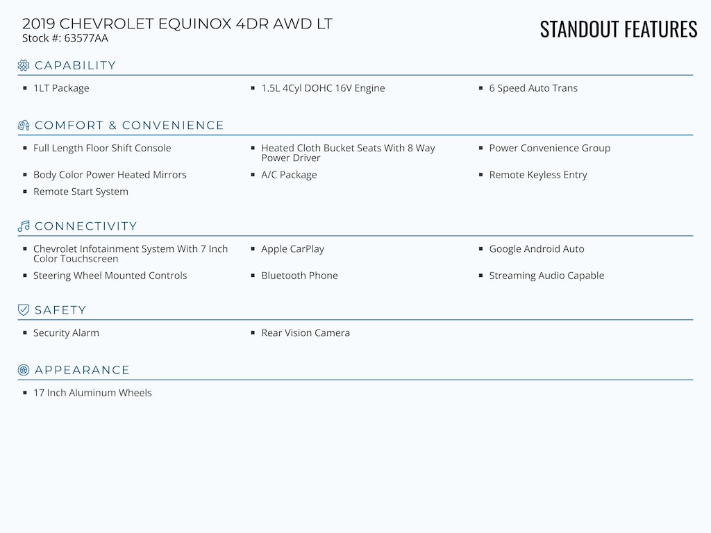 Standout features of this 2019 CHEVROLET EQUINOX 4DR AWD LT include: