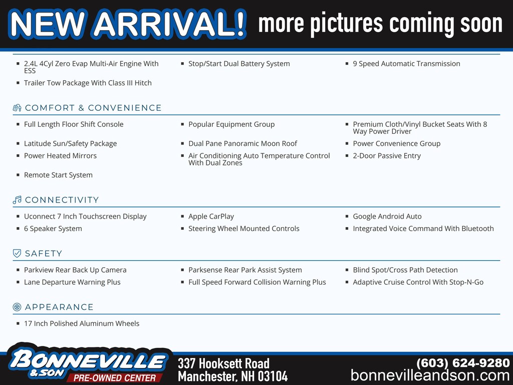 Infotainment & Connectivity: Uconnect 7 Inch Touchscreen Display || Apple CarPlay || Google Android Auto || 6 Speaker System || Steering Wheel Mounted Controls || Integrated Voice Command With Bluetooth